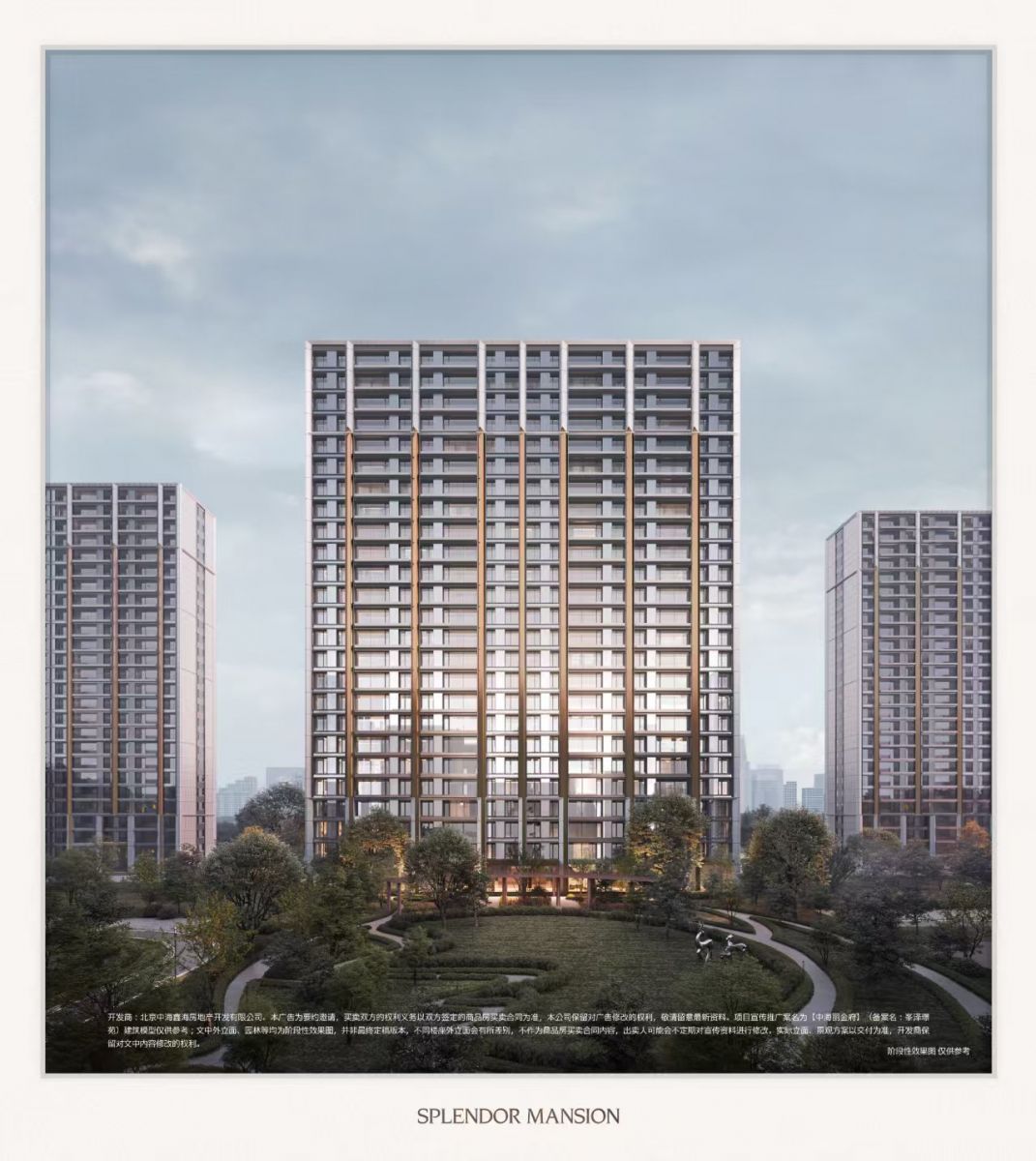 4、文中外立面、园林等均为阶段性效果图,并非最终定稿版本,不同楼座外立面会有所差别,不作为商品房买卖合同内容,出卖人可能会不定期对宣传资料进行修改。实际立面、景观方案以交付为准,开发商保留对文中内容修改的权利,敬请留意最新资料。
