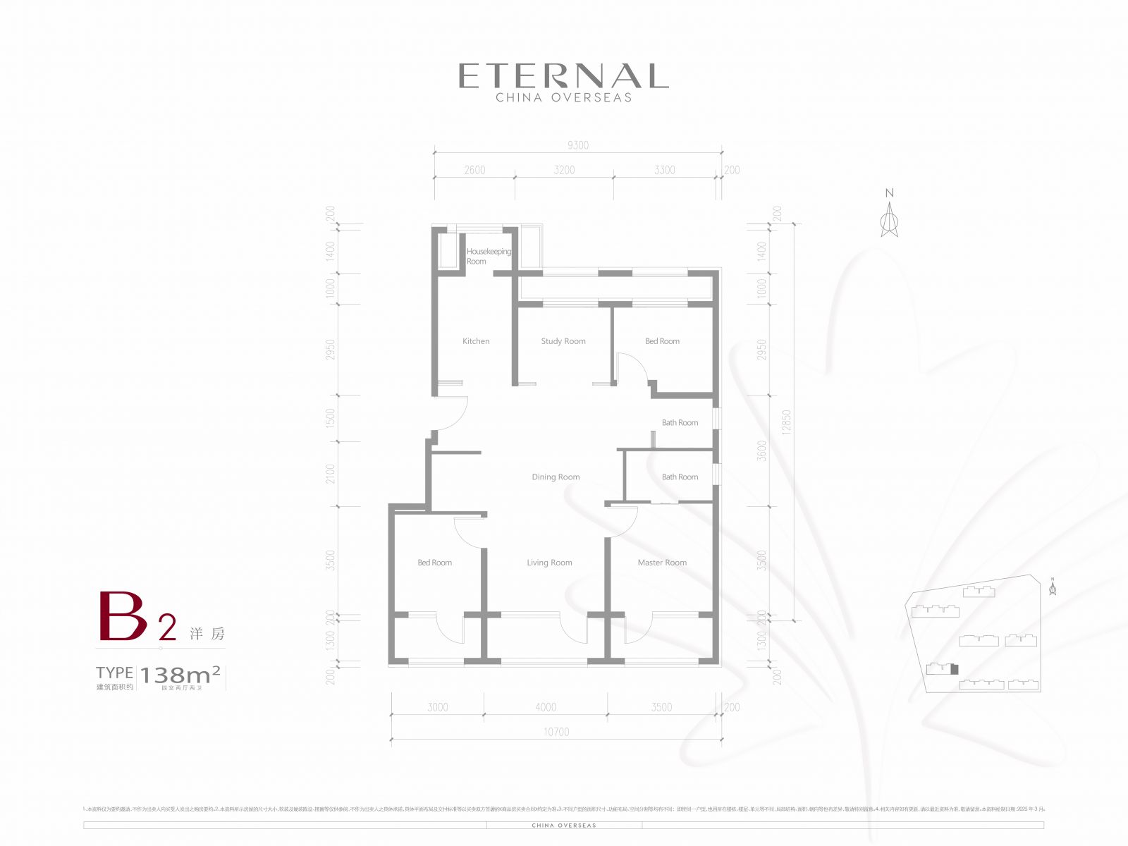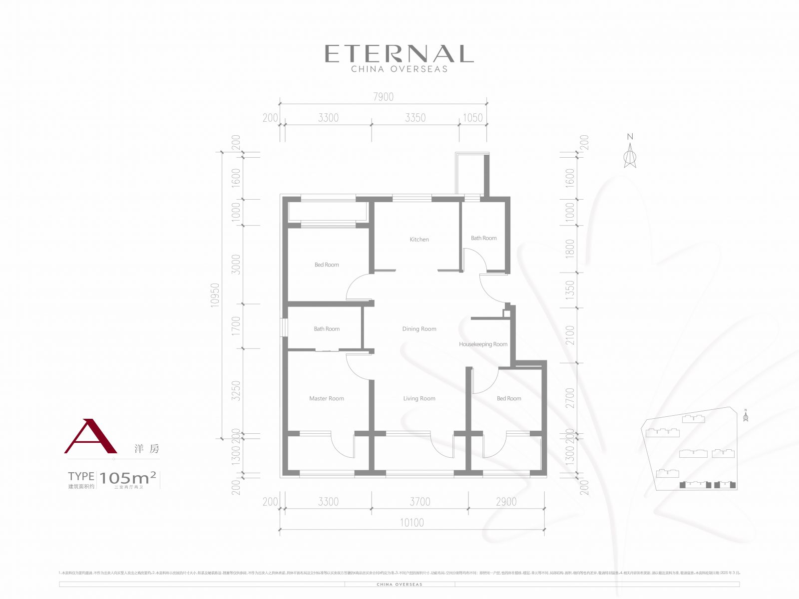 产权面积:建面约105-155平三居至四居室